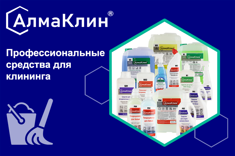 Бренд «АлмаКлин» представляет серию высокоэффективных профессиональных чистящих составов, разработанных и произведённых в России. Благодаря полной локализации производства удалось достичь конкурентной стоимости, при этом продукция соответствует требованиям национальных стандартов и санитарного законодательства.