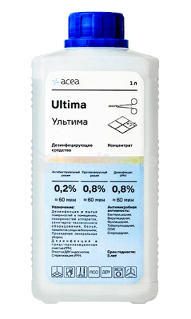 Многоцелевое дезинфицирующее средство «Ультима» 1 л — это профессиональный концентрат для полного цикла обработки. Эффективно очищает, дезинфицирует и дезодорирует, обладая широким спектром активности и пролонгированным действием.